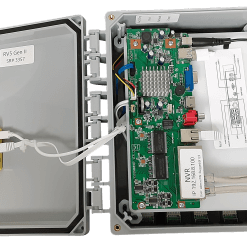 The RV-5 has been incredibly popular, and we are pleased to announce that we have made a few changes to improve the RV5 performance. There have been so many changes we also upgraded the name! The “RV5 Gen II” has a more powerful processor, and can handle more video bandwidth than the original RV5. What does that mean to you? No delays on the “live view”, and better, more consistent frame rate on the recorded video. It also means that higher resolution cameras can be used. This is still the rugged Outdoor IP Network Video Recorder with 8 Channel POE in a NEMA-4 waterproof and weatherproof box, but now it has even better performance. This long distance IP Camera System can really go the distance, guaranteeing at least 800 feet for Power, Video and Audio over normal CAT5 or CAT6. The new processor runs cooler as well, so we also removed the only moving part – the fan. No worries, we replaced the fan with a very large heat sink that actually works better than the fan did.