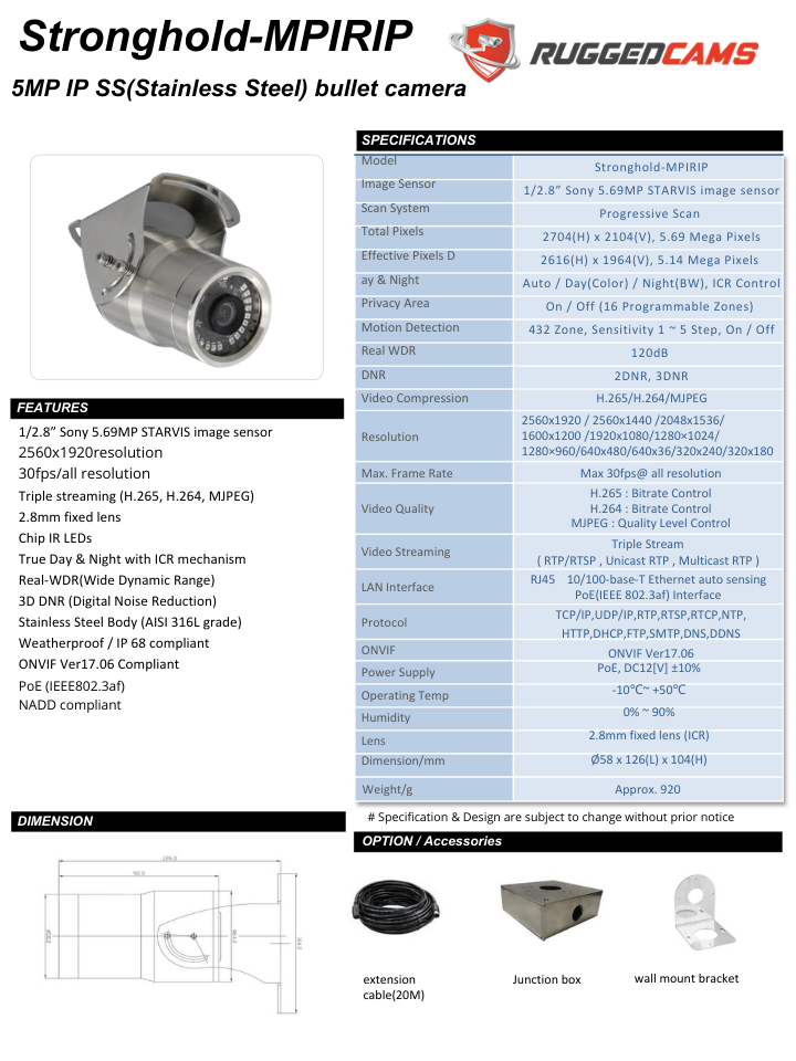 See the Specs for more detailed information, and see the entire family of StrongHold Stainless Steel Cameras from Rugged Cams..